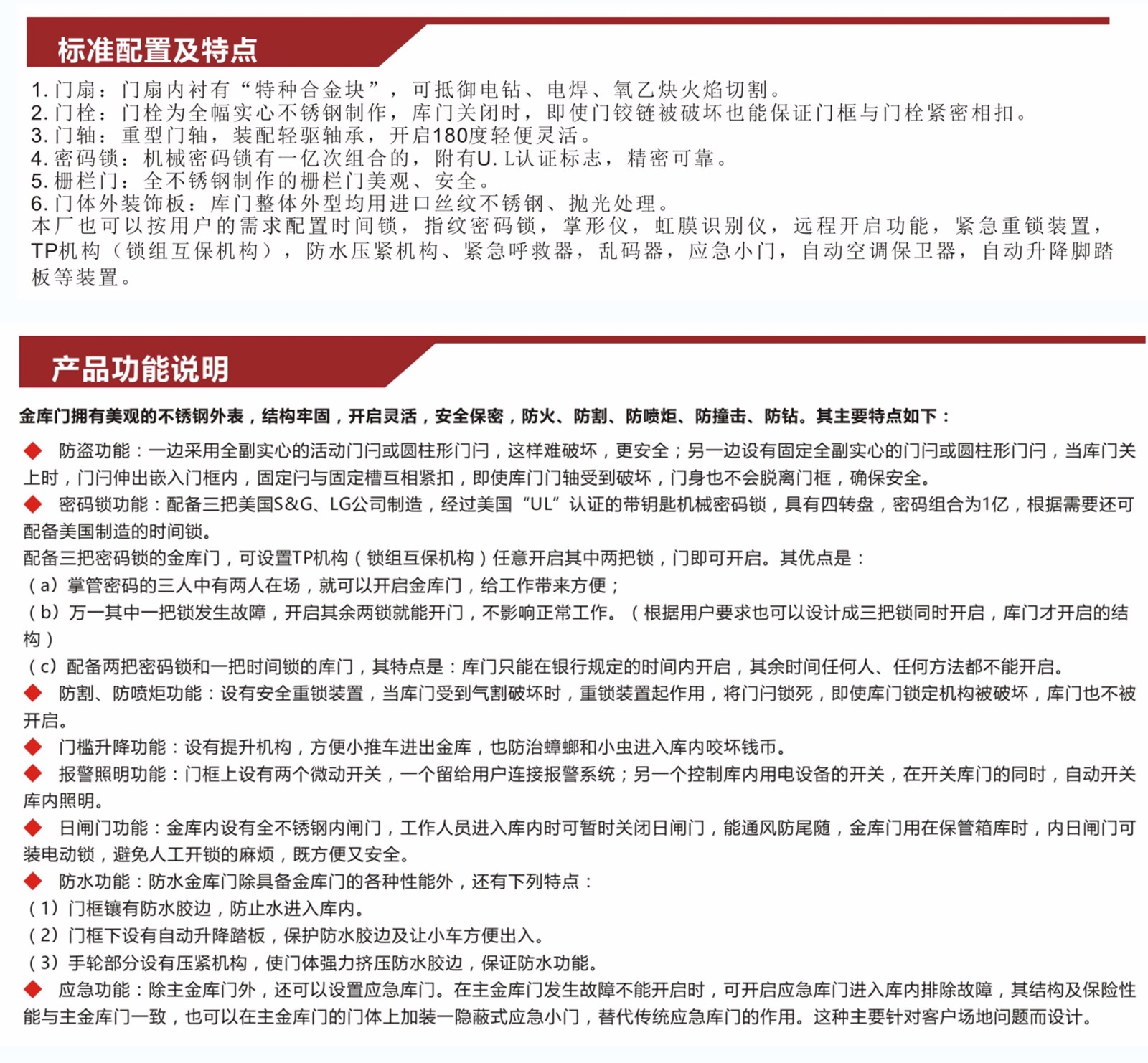• 特殊性能:防盜、防火、防水、防鉆、防切割